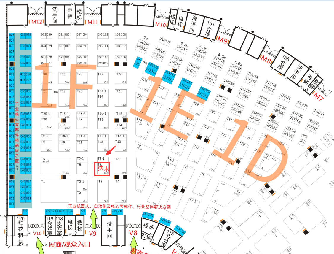 工業機(ji)器人及核心零部件展(zhan)區F區T7展(zhan)位,可由V8、V9門進入。