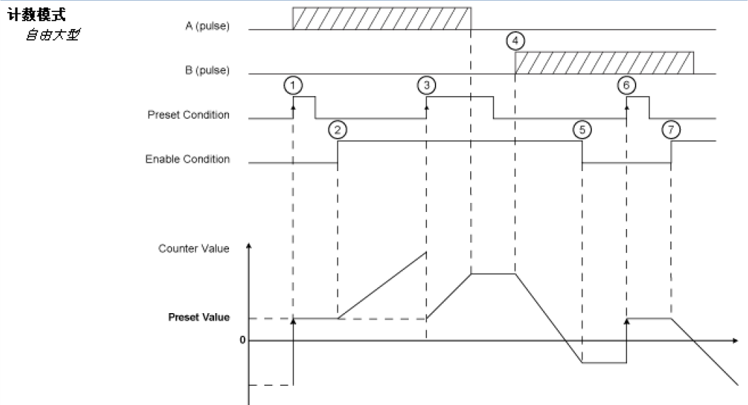 使用自由大(da)型計數模式,可以調(diao)用功能(neng)塊 ExpertSetParam,將(jiang)管腳 param 賦(fu)值(zhi) 0(設置(zhi)預設值(zhi)),并(bing)將(jiang)掉電前保存的計數值(zhi)賦(fu)給管腳 ParamValue,觸發此功能(neng)塊執行即可將(jiang)預設值(zhi)寫入?時序(xu)圖如下:
