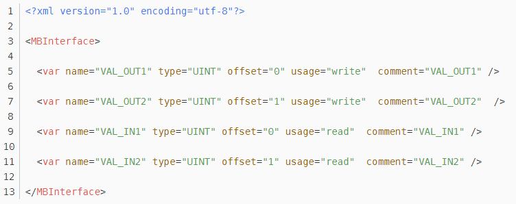 添加(jia)的MODBUSGENTCPS相當于(yu)Slave MODBUS設備。它(ta)內部的讀寫寄存器在一(yi)個XML 中定義。比(bi)如modbusmap.xml。如下面所示