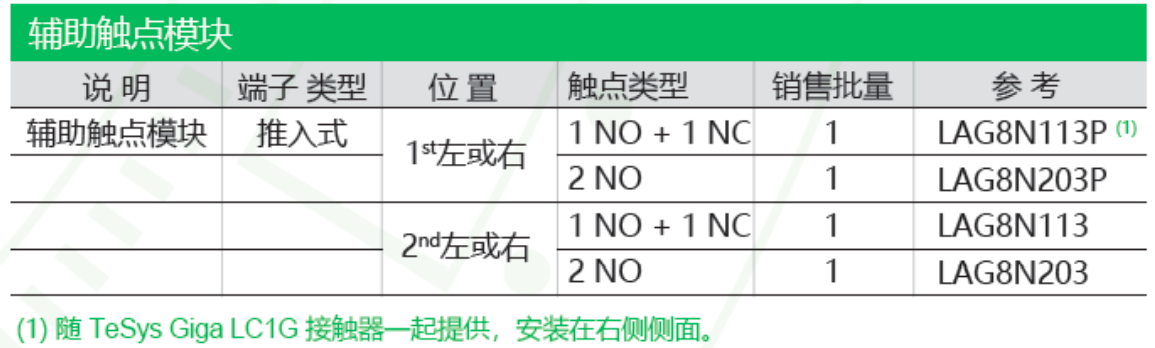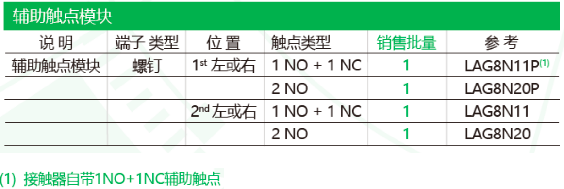 LC1G 全(quan)球版接觸器輔助觸點型號如下: